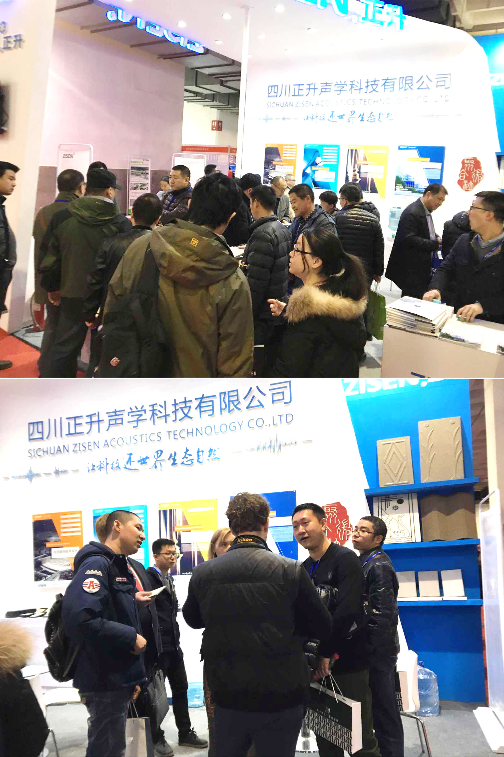 根據這次展會的主題,正升聲學科技有限公司以聚合微粒藝術吸聲材料為主打產品,以創(chuàng)新工藝為熱點,以聚合微粒材料技術為要點,以健康環(huán)保、隔音降噪為主題進行宣傳展示。