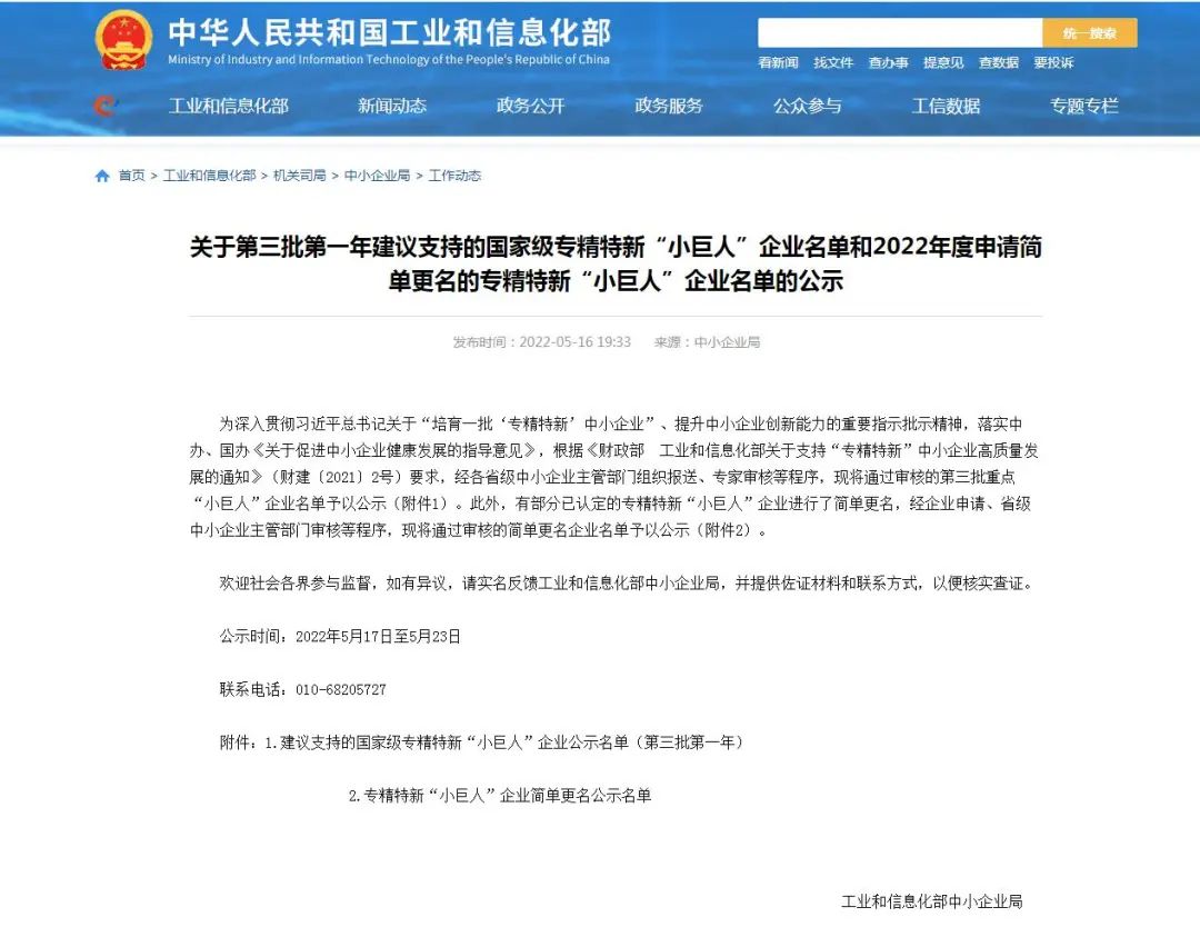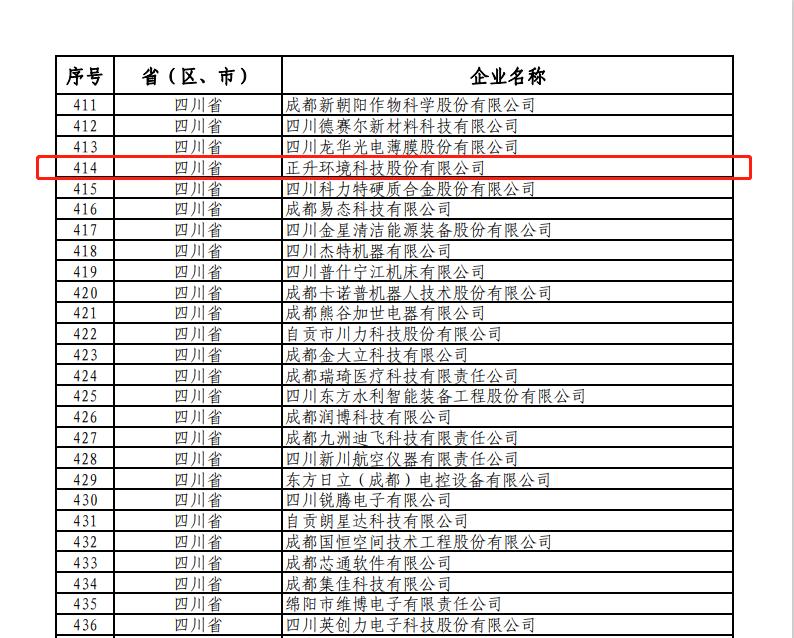 近日,工信部中小企業(yè)局公示了第三批第一年建議支持的國(guó)家級(jí)專精特新“小巨人”企業(yè)名單,正升環(huán)境科技股份有限公司成功入選。正升環(huán)境從數(shù)千家國(guó)家級(jí)專精特新“小巨人”企業(yè)中脫穎而出,成為四川省29家之一,也是本次成都市溫江區(qū)唯一入選企業(yè)。